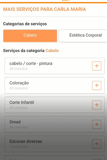 Ao clicar no "+" você só precisará selecionar os serviços que deseja adicionar, clicar em salvar e pronto! Todos os agendamentos serão registrados.